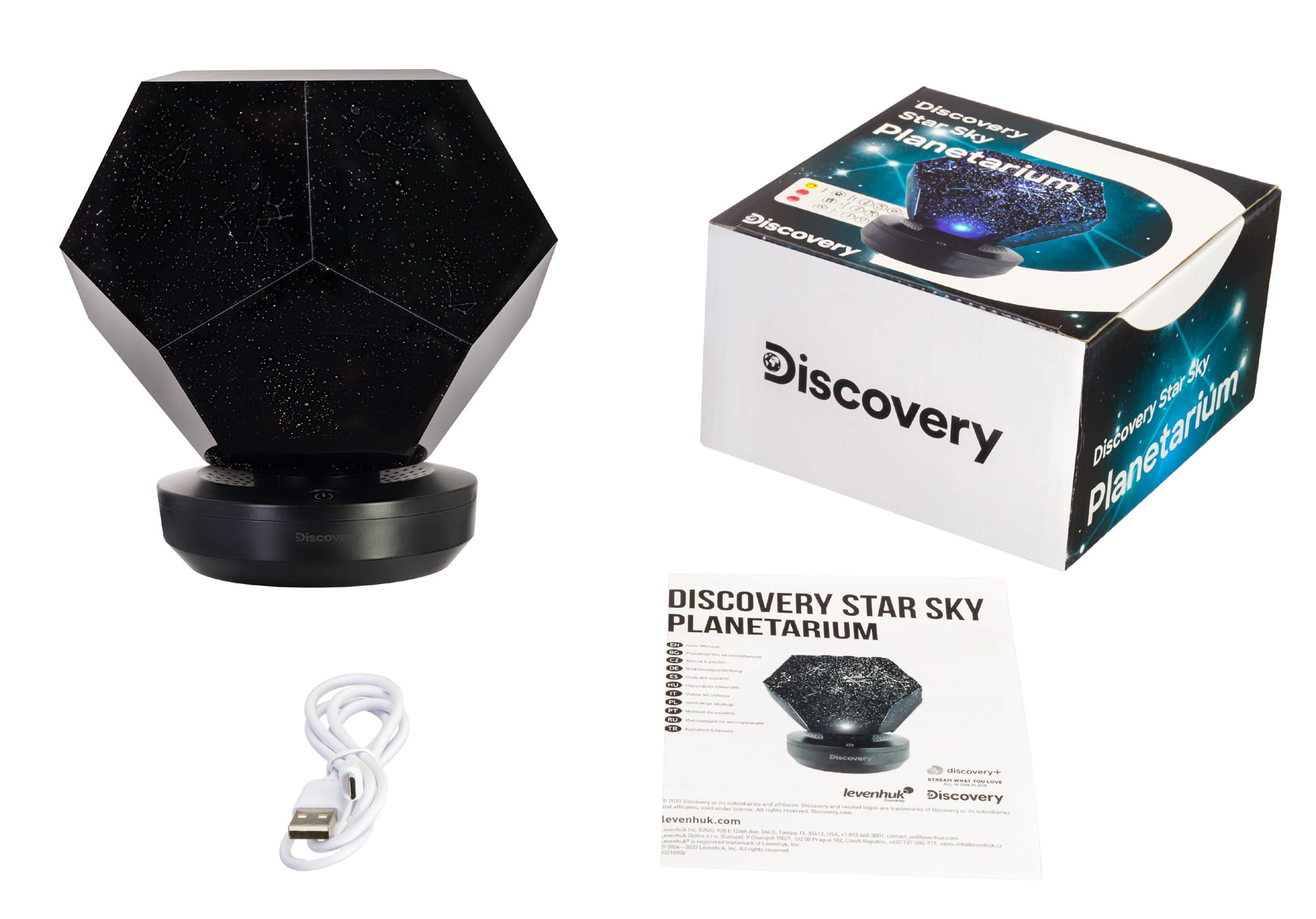 Astroplanetarium Levenhuk Discovery Star Sky P5 to projektor gwieździstego nieba oraz stylowy element dekoracji wnętrz. Wprawi w zachwyt całą rodzinę, tworząc unikatową atmosferę w pomieszczeniu oraz zadziwi gości podczas przyjęcia lub imprezy tematycznej. Astroplanetarium ma kształt wielowymiarowego kryształu, składa się z kilku elementów oraz jest zamontowane na podstawce. Podłącz urządzenie do źródła zasilania, włącz projektor i pozwól, by całe pomieszczenie wypełniło się gwiazdami i konstelacjami!