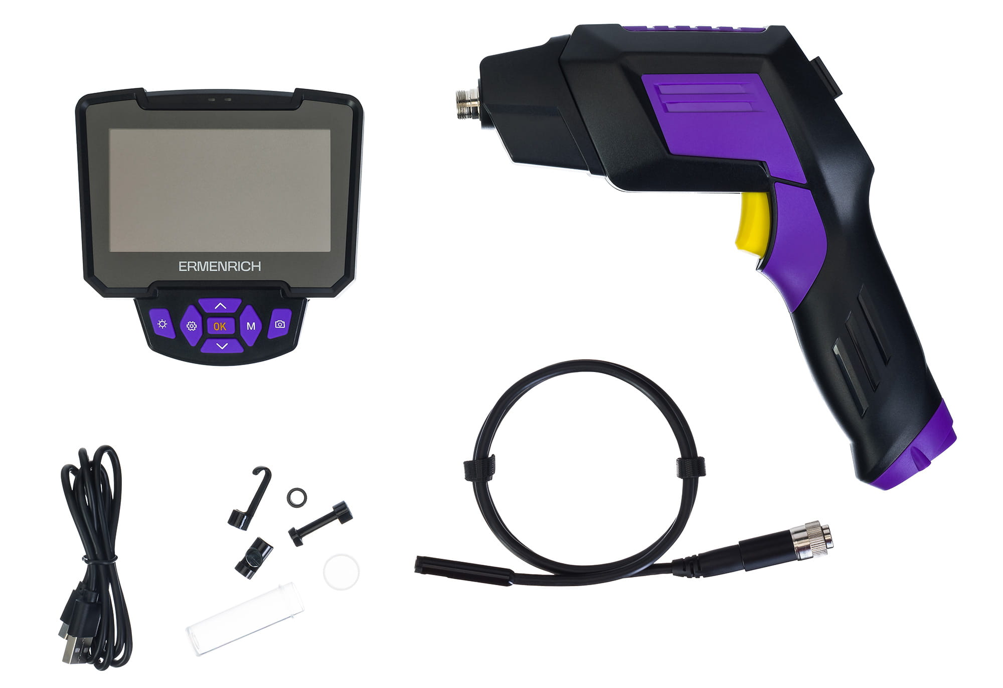 Kamera inspekcyjna Ermenrich Seek VE40 jest przeznaczona do inspekcji wąskich miejsc w budynkach, maszynach i urządzeniach, do których trudno dotrzeć ze względu na ich lokalizację. Jej funkcje doskonale sprawdzają się podczas naprawy rurociągów, diagnozowania usterek w samochodach, kontrolowania urządzeń i przestrzeni w ścianach, sprawdzania pojazdów podczas odpraw celnych itp. Urządzenie jest odpowiednie do zastosowań domowych i profesjonalnych.