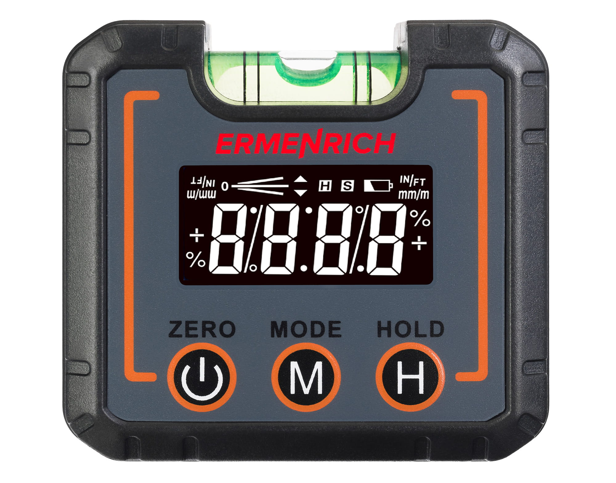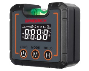 Ermenrich Verk LQ30 to poziomica cyfrowa, która jest doskonałym narzędziem dla każdego pracownika budowlanego, instalatora, mistrza prac wykończeniowych, operatora maszyn produkcyjnych itp. Przyrząd sprawdzi się również podczas domowych prac renowacyjnych. Urządzenie mierzy kąty nachylenia w zakresie 360° (4x90°), wskazując stopień nachylenia i jego kierunek na wyświetlaczu LCD. Odczyty pomiarów są podawane w stopniach i innych dostępnych jednostkach miary. Urządzenie mierzy kąt nachylenia i ułatwia wydajne poziomowanie obiektu. Wbudowana poziomica pęcherzykowa umożliwia umieszczenie urządzenia na dowolnej powierzchni.