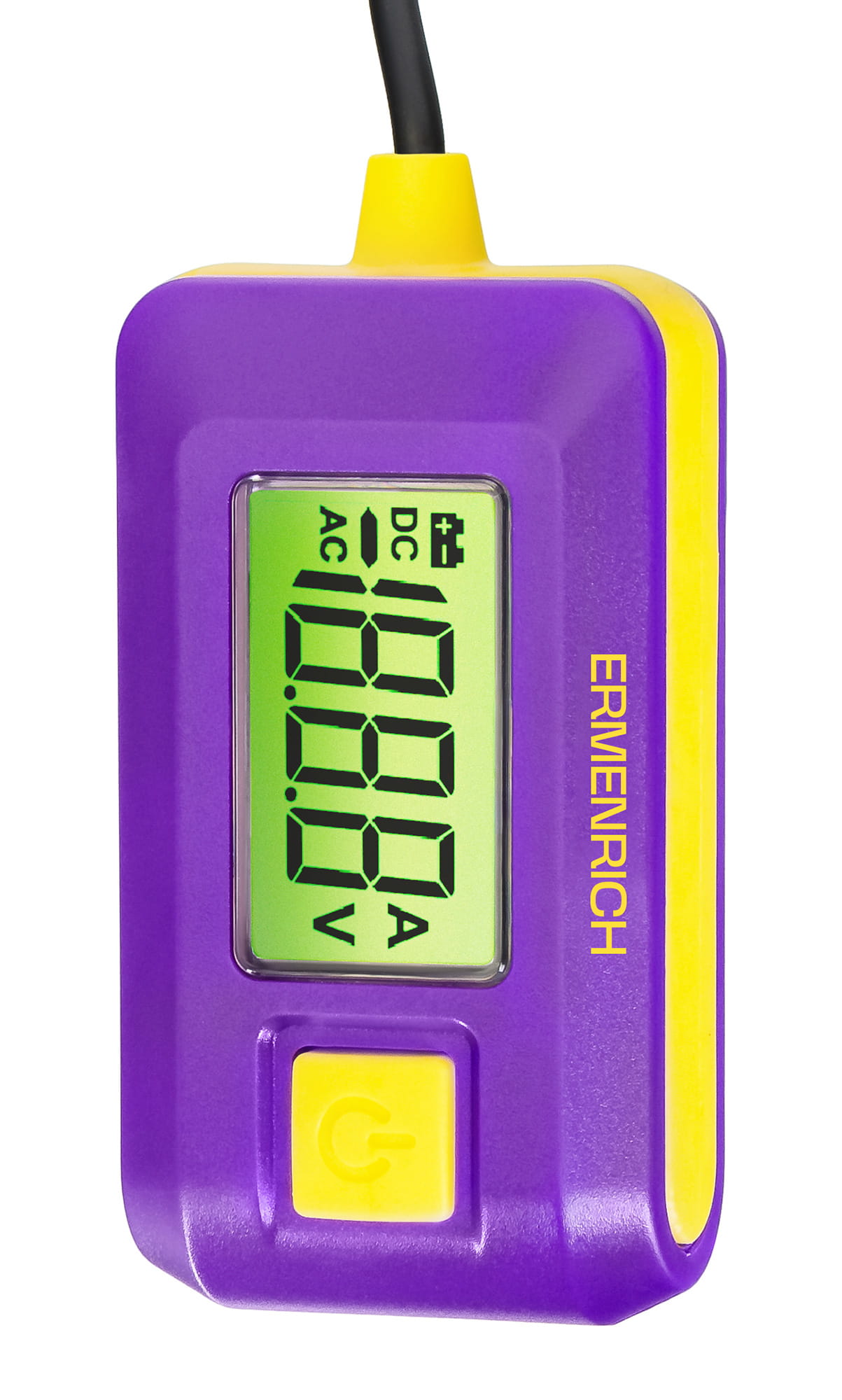 Samochodowy miernik prądu Ermenrich Zing CT30 jest zasilany jedną baterią, wykonany z trwałego tworzywa ABS i jest wyposażony w mały wbudowany ekran.