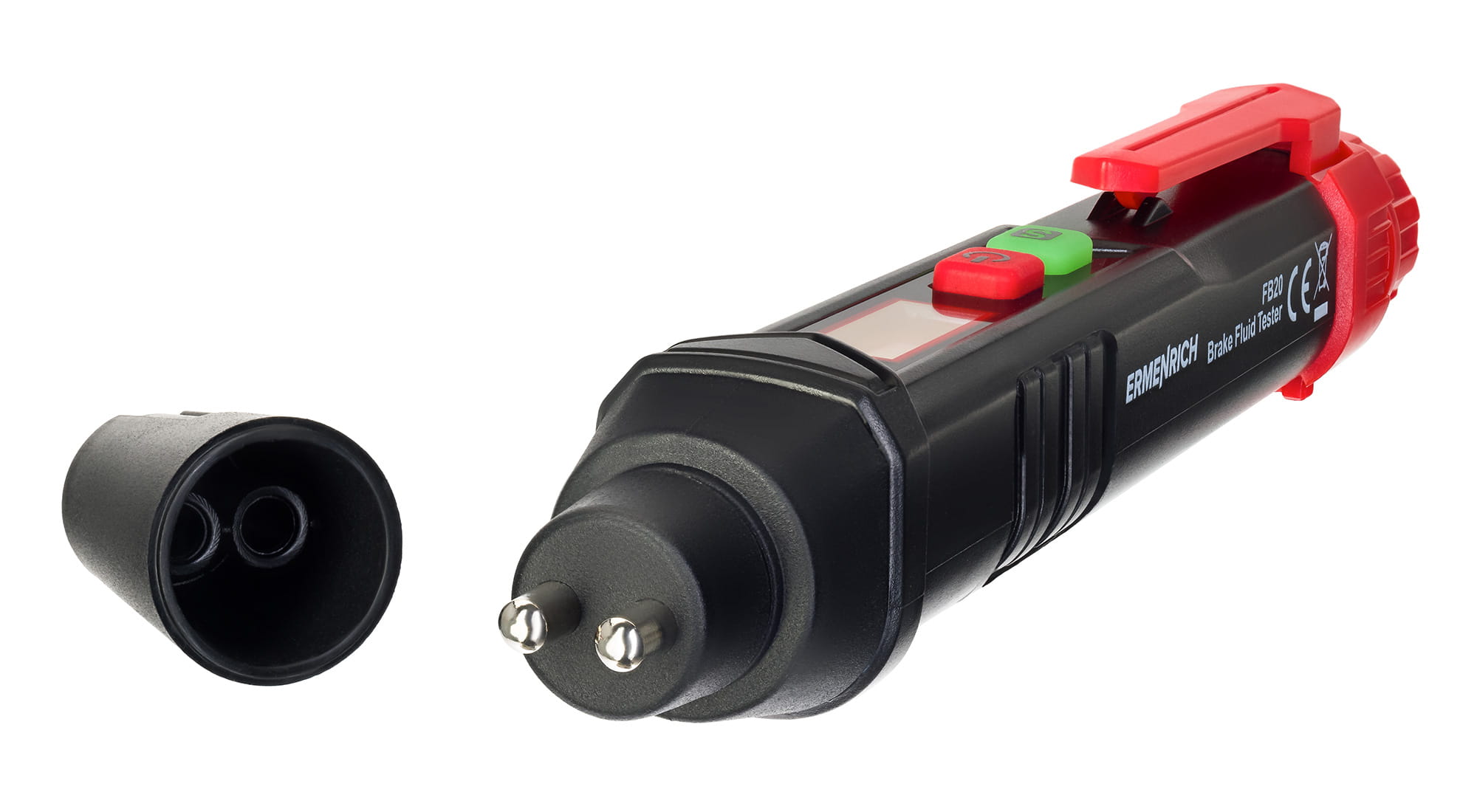 Tester Ermenrich Verk FB20 to niewielkie urządzenie z prostym sterowaniem służące do sprawdzania jakości płynu hamulcowego. Wilgoć gromadząca się w płynie hamulcowym podczas eksploatacji samochodu obniża jego właściwości użytkowe. Jeśli nagromadzi się zbyt dużo wilgoci, może dojść do awarii układu hamulcowego. Dlatego zaleca się regularne sprawdzanie płynu hamulcowego.