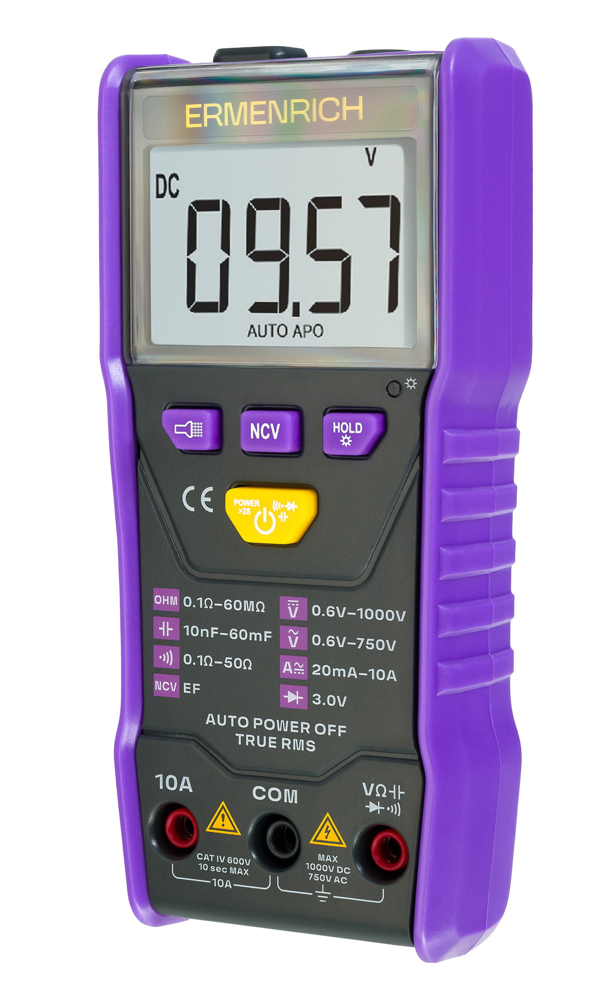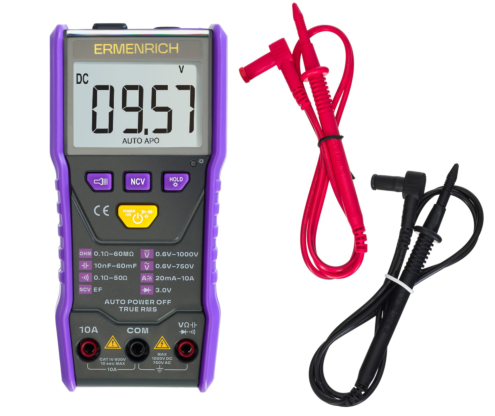 Uniwersalny miernik cyfrowy Ermenrich Zing TC20 to przenośne urządzenie do pomiaru napięcia prądu przemiennego i stałego, natężenia prądu przemiennego i stałego, rezystancji i pojemności. Urządzenie nie jest wyposażone w przełącznik obrotowy, tj. limit pomiaru jest ustawiany automatycznie. Chronione przed przeciążeniem urządzenie jest niezawodne i stabilne, dzięki czemu zapewnia wysoką precyzję pomiarów. Przydatne dla osób zainteresowanych komunikacją radiową, majsterkowiczów i profesjonalnych elektryków.