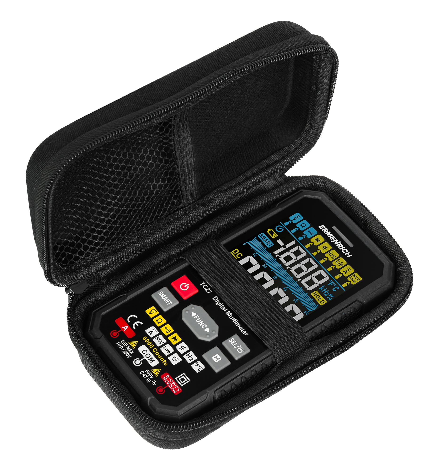 Uniwersalny miernik cyfrowy Ermenrich Zing TC27 służy do testowania sprzętu elektrycznego i obwodów elektrycznych. Jego szeroki zakres funkcji pozwala na używanie go nie tylko w domu, ale także w pracy. Uniwersalny miernik jest doskonałym wyborem dla inżynierów, elektryków, serwisantów i innych pracowników technicznych. Uniwersalny miernik Ermenrich Zing TC27 to urządzenie True RMS, które gwarantuje bardzo dokładne pomiary sygnałów niesinusoidalnych.