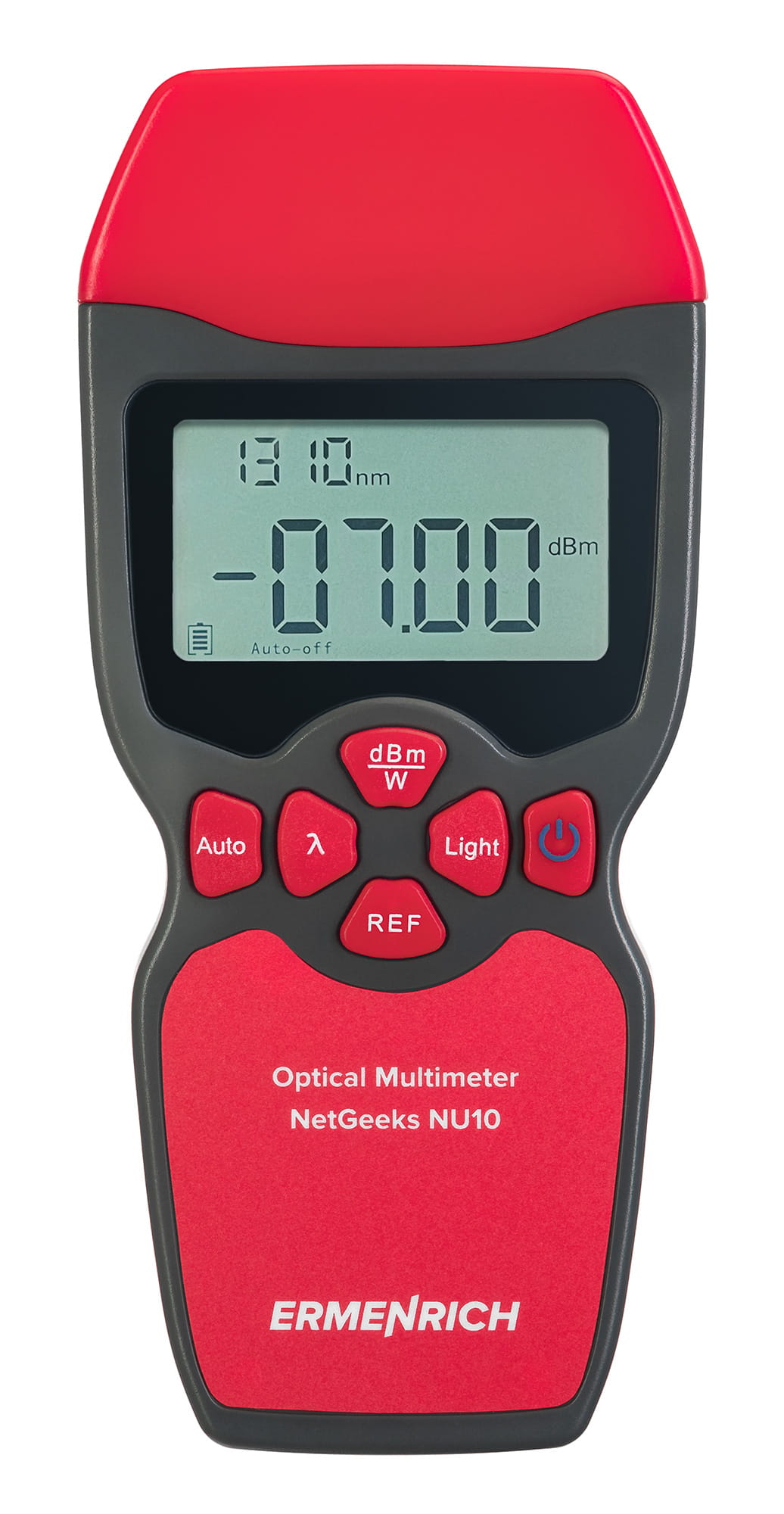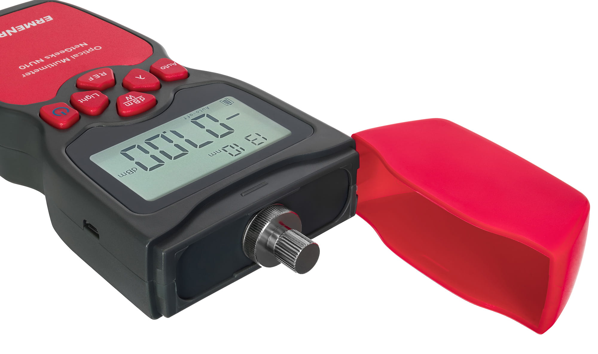 Uniwersalny miernik mocy optycznej Ermenrich NetGeeks NU10 to niewielkie urządzenie do testowania światłowodowych linii komunikacyjnych. Można nim mierzyć bez względu moc optyczną lub względne straty mocy optycznej między dwoma punktami na światłowodzie. Urządzenie jest przydatne dla osób zajmujących się montażem i konserwacją sieci przewodowych lub sprawdzaniem i certyfikacją urządzeń telekomunikacyjnych.