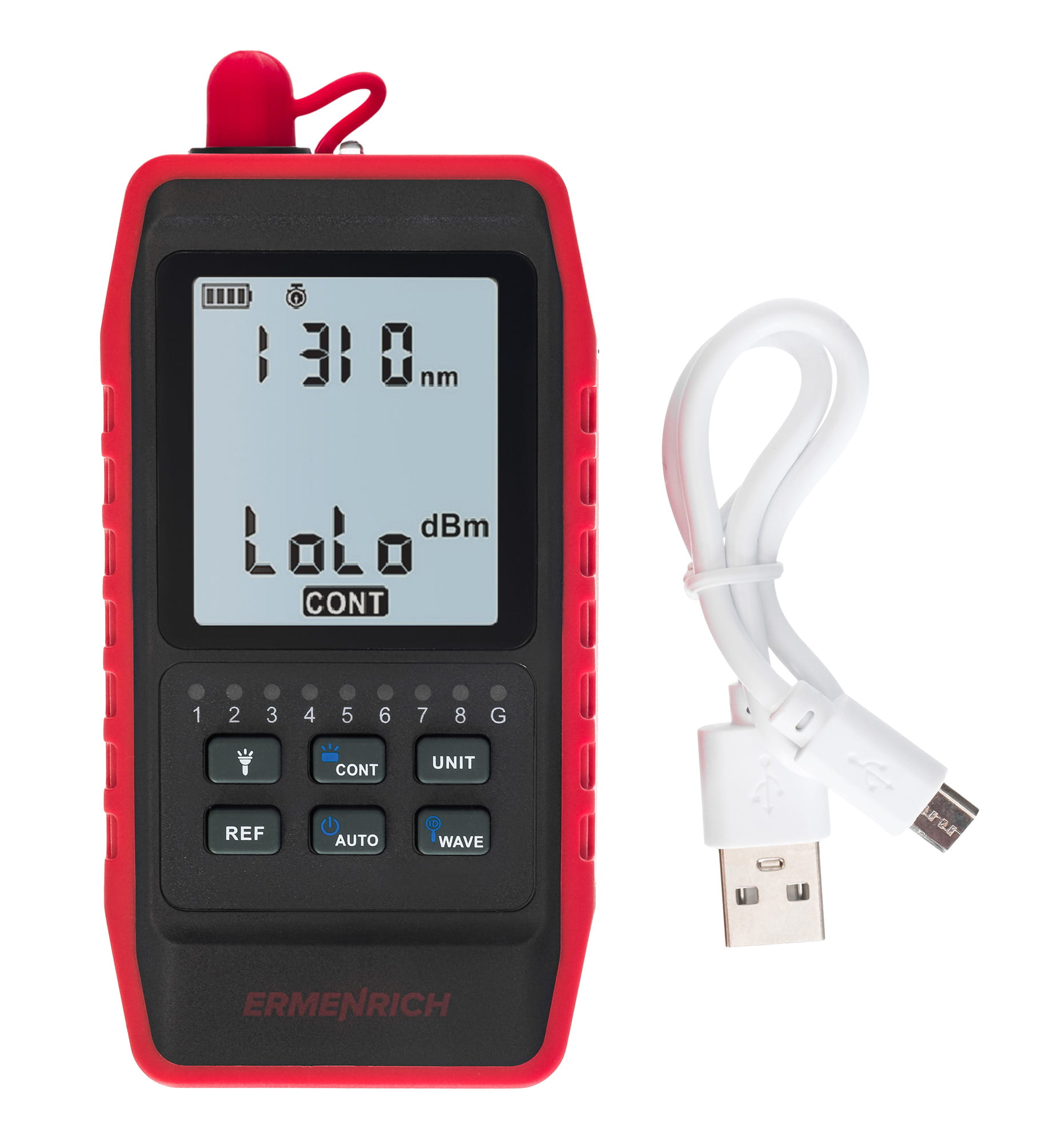 Uniwersalny miernik mocy optycznej Ermenrich NetGeeks NU20 służy do testowania światłowodów. Można nim zmierzyć bezwzględną moc optyczną dowolnego źródła w systemie światłowodowym, zmierzyć straty mocy optycznej w przewodzie oraz wykonać test ciągłości obwodów, aby sprawdzić, czy światłowody nie są przerwane. Miernik mocy optycznej to niezbędne urządzenie dla instalatorów przewodów sieciowych, administratorów systemu oraz inżynierów zajmujących się światłowodami, którzy wykonują szeroką gamę profesjonalnych zadań. Urządzenie można również stosować w domu.