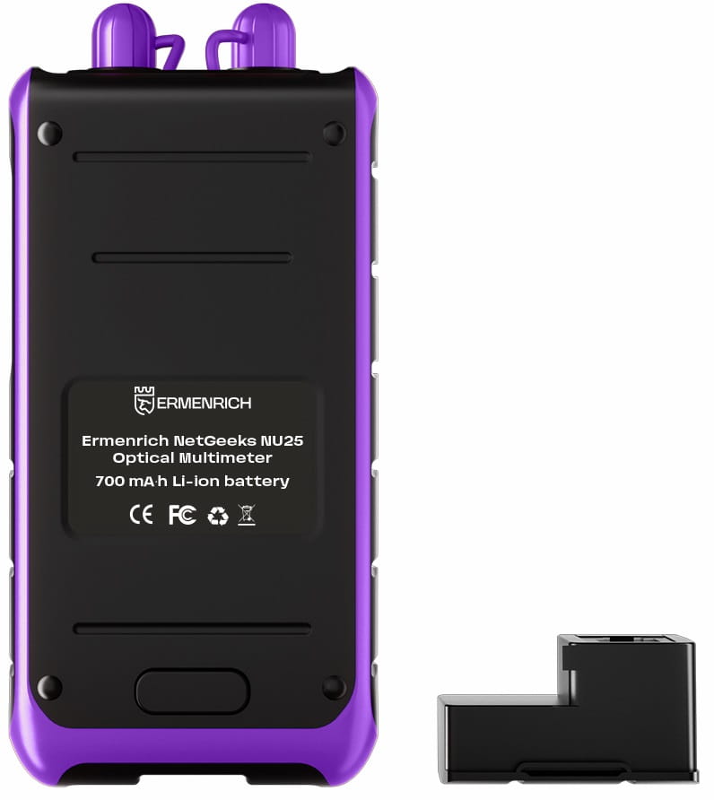 Urządzenie może działać na jednej z sześciu głównych długości fal: 850, 980, 1310, 1490, 1550 lub 1625 nm. Funkcja VFL ma osobną długość fali wynoszącą 650 nm, a także częstotliwości wykrywania 270 Hz, 1 kHz i 2 kHz. Urządzenie jest wyposażone w złącza optyczne zgodne ze standardami FC/SC/ST oraz złącze sieciowe RJ45. Uniwersalny miernik Ermenrich NetGeeks NU25 obsługuje kable jednomodowe (SM) i wielomodowe (MM).