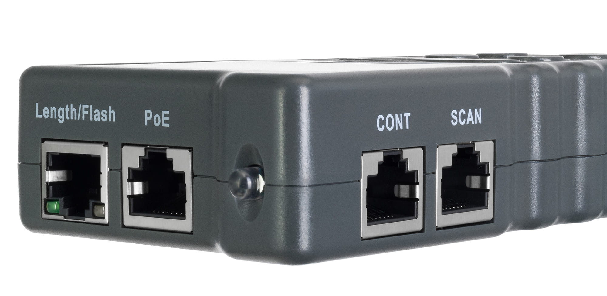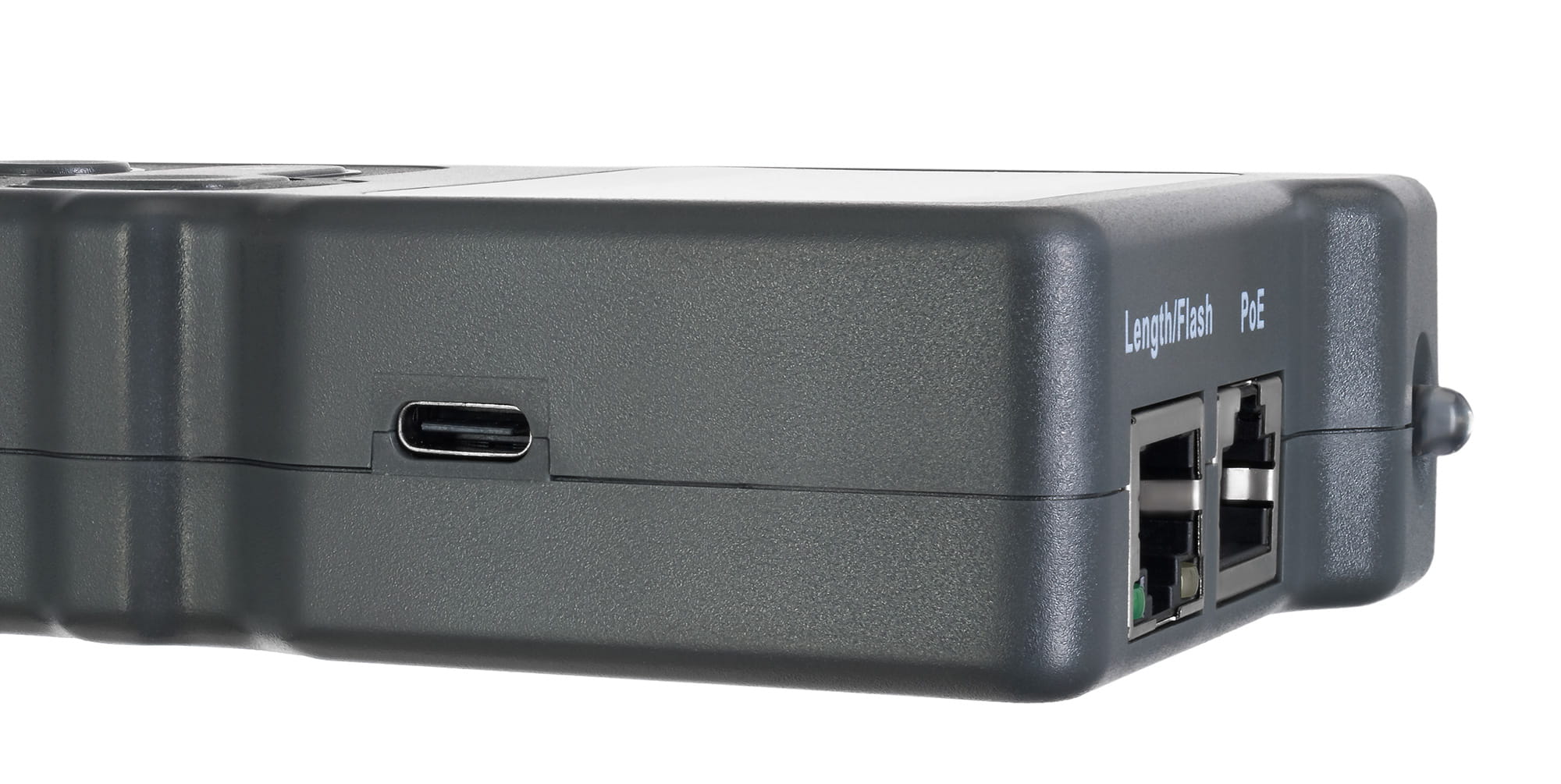 Funkcja zapalenia diody przy gnieździe (Port Flash) pozwala wyszukać konkretne gniazdo na switchu lub routerze sieciowym, do którego jest podłączony przewód. Test PoE identyfikuje typ urządzenia zasilającego (PSE) i wykrywa urządzenia pośrednie/końcowe. Urządzenie mierzy również napięcie i polaryzację. Odbiornik testera można ustawić w trybie NCV w celu bezkontaktowego wykrywania napięcia.