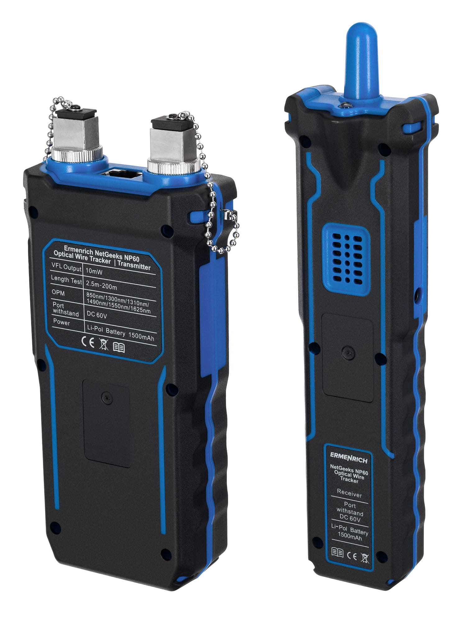 Ermenrich NetGeeks NP60 stanowi połączenie funkcji testera przewodów, miernika długości przewodów oraz uniwersalnego miernika optycznego: to doskonały wybór do instalowania, testowania i konserwacji sieci z przewodami skręcanymi parami, w tym używanych w szybkich połączeniach internetowych. To wspaniałe narzędzie do użytku domowego oraz do zastosowań profesjonalnych.
